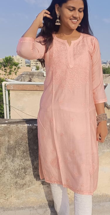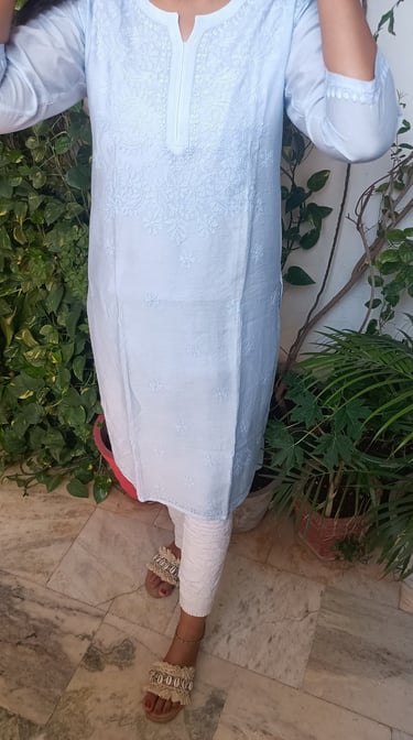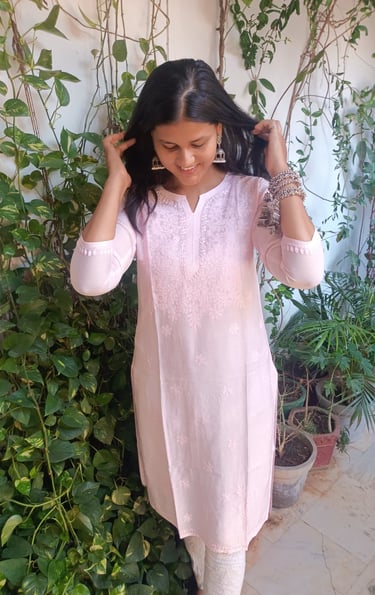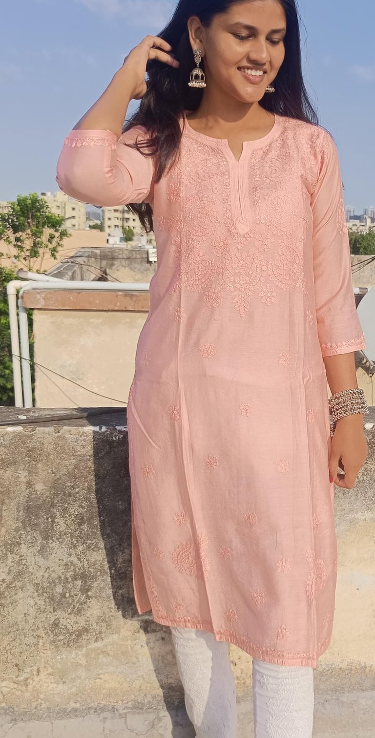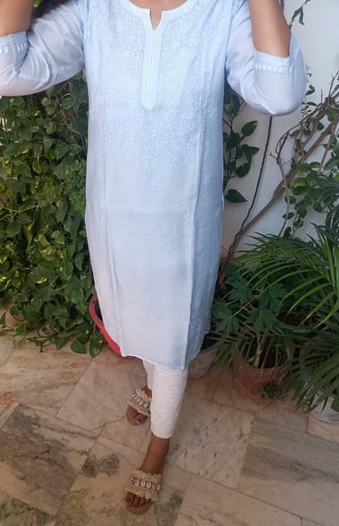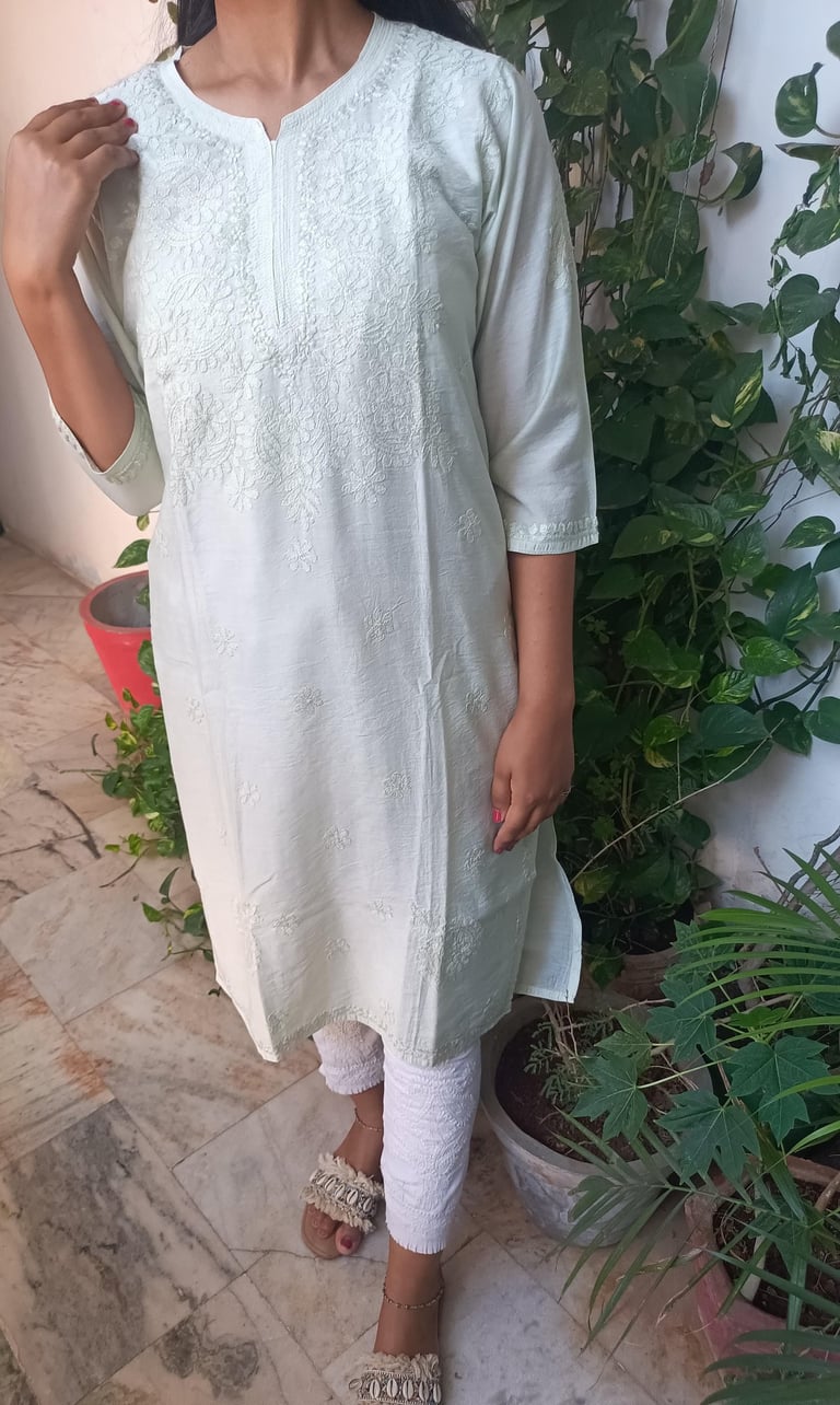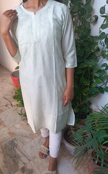 CHANDERI KURTA INTRICATE WITH BEAUTIFUL CHIKAN WORK